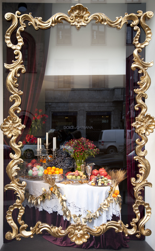 After having seen the beautiful displays at the womenswear store we headed straight to Corso Venezia to see what was happening in the menswear boutique. His and Hers perfection: another beautiful table with baroque frames.