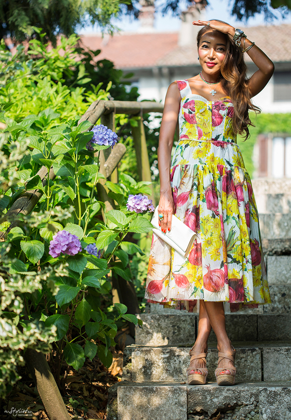 ETERNITY ROMANTIC Today a amazing day with the sun, I took a break to out of Milan. ! I think fifties silhouette is a eternity romantic and it makes me feel like a 50’s diva. I’m wearing romantic crepè organza full skirt dress inspired the 1950’s silhouette of Dolce&Gabbana SS 2012 collection. It was a real party of Italian beauty and produce. Both fashion and horticultural. As always, i’m going to show you how i wear the styling tips, but always in a more extreme version of veggies! What do you think about it? I have fallen in love with this print- the daisies mixed with the onions are so delicate and artfully designed. For fashion that looks good enough to eat, trust Dolce&Gabbana to come up with a novel way of interpreting well loved and well known ingredients: Veggies. Follow on Instagram my daily update!